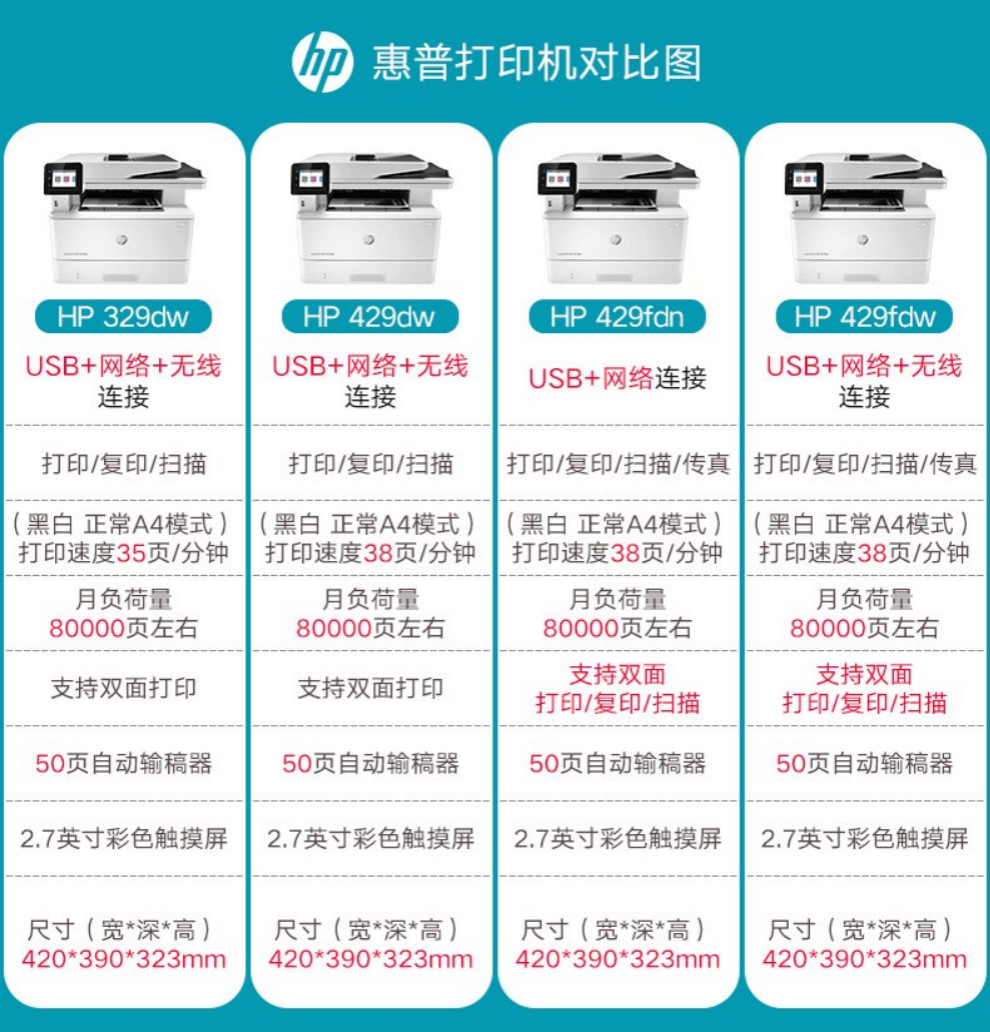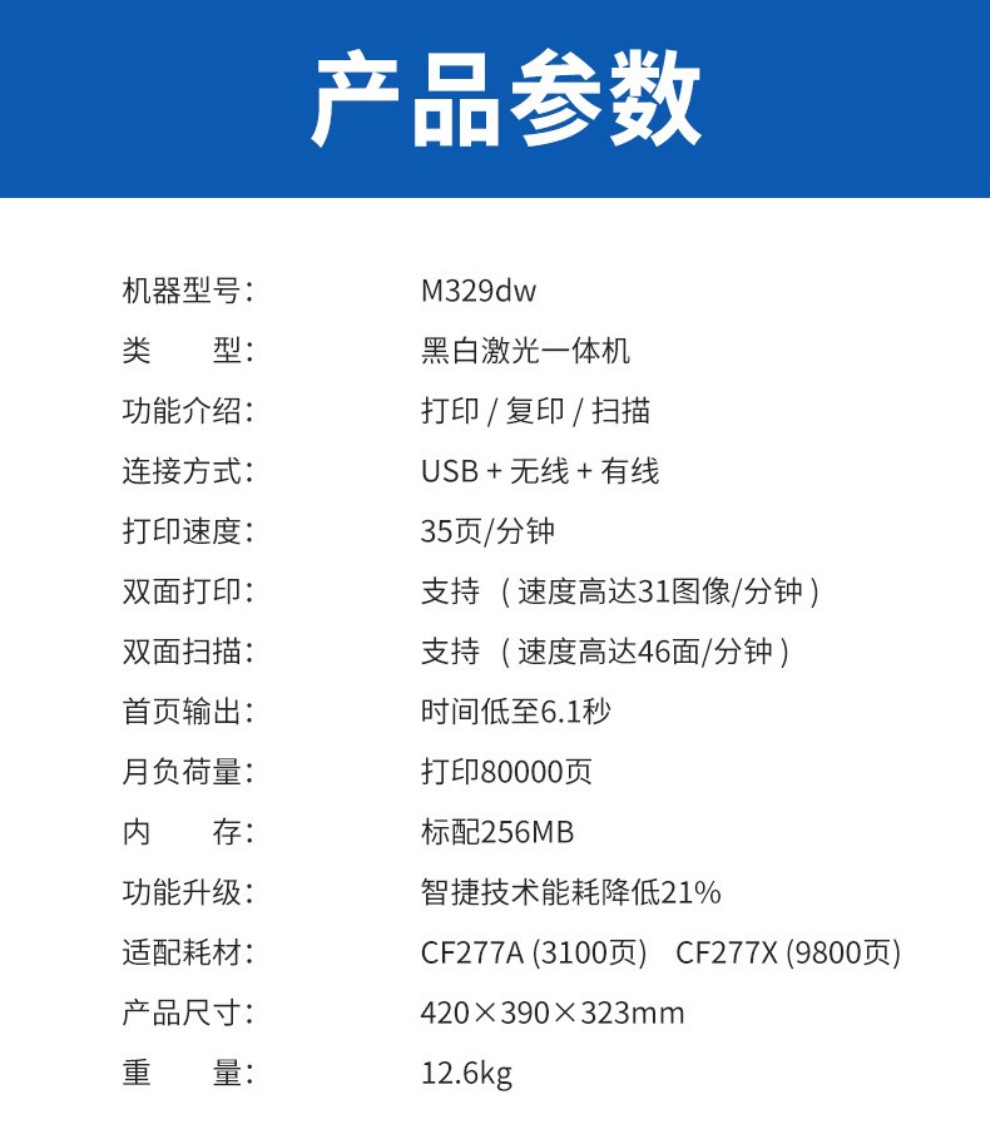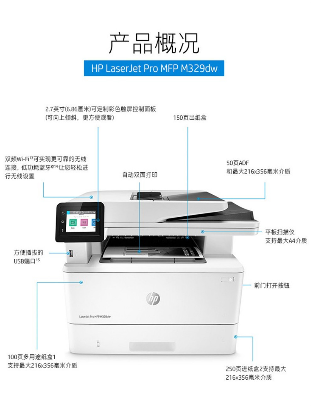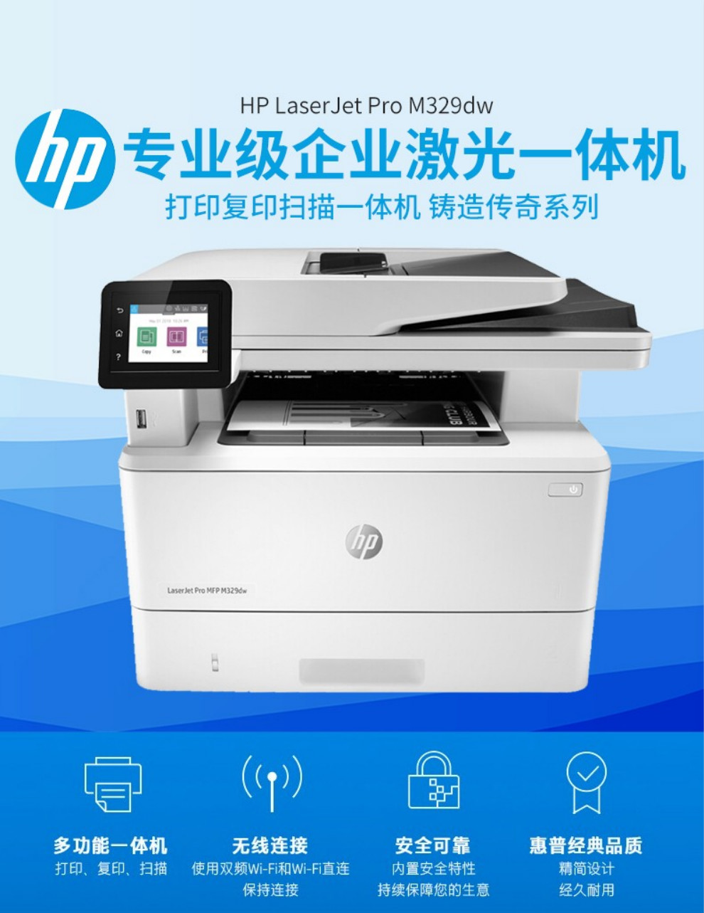 惠普(HP)黑白激光一體機(jī)M429dw/fdw 329dw打印機(jī)多功能自動(dòng)雙面復(fù)印掃描無線 M429fdw【四合一+自動(dòng)雙面打印+無線連接】 官方標(biāo)配