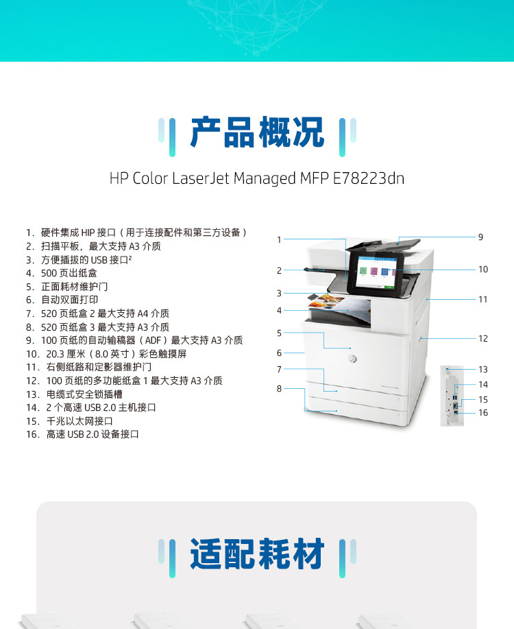 惠普hp 78223dn 彩色激光多功能一體機 自動雙面打印復(fù)印掃描