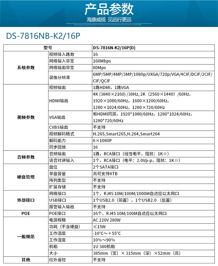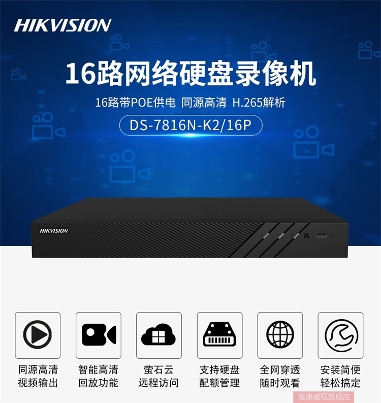 ??低?DS-7816N-K2/16P ??低暰W(wǎng)絡(luò)監(jiān)控硬盤錄像機(jī)16路帶POE 不帶硬盤