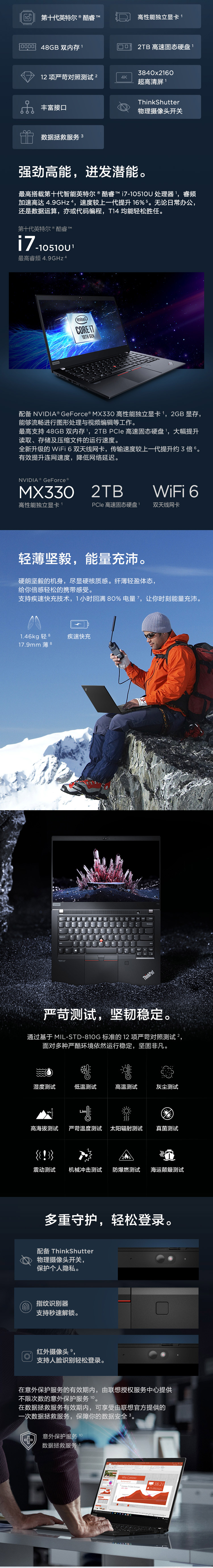 聯(lián)想ThinkPad T14 酷睿版 英特爾酷睿i5 2020款 4FCD 14英寸輕薄筆記本電腦 i5-10210U 8G 512GSSD 2G獨(dú)顯