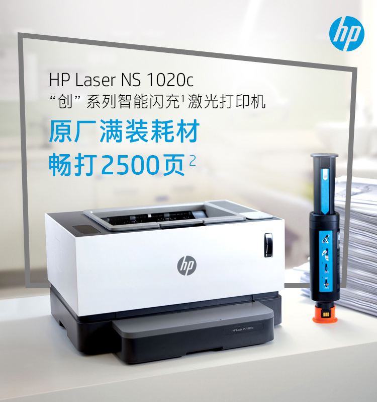 惠普(HP)創(chuàng)系列NS1020c智能閃充大粉倉激光打印機(jī) 1020plus升級款半容裝 15秒充粉單打成本5分錢