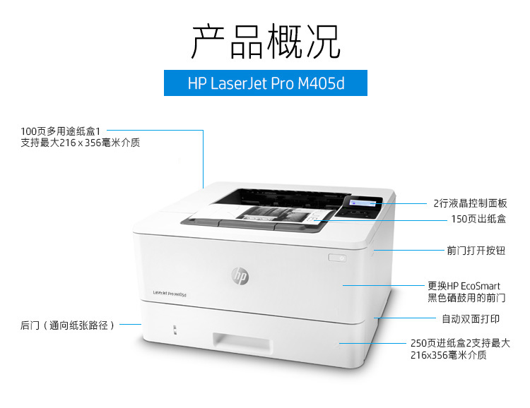 惠普(HP) M405d專業(yè)級激光打印機 多功能一體機 液晶顯示屏 自動雙面打印 USB