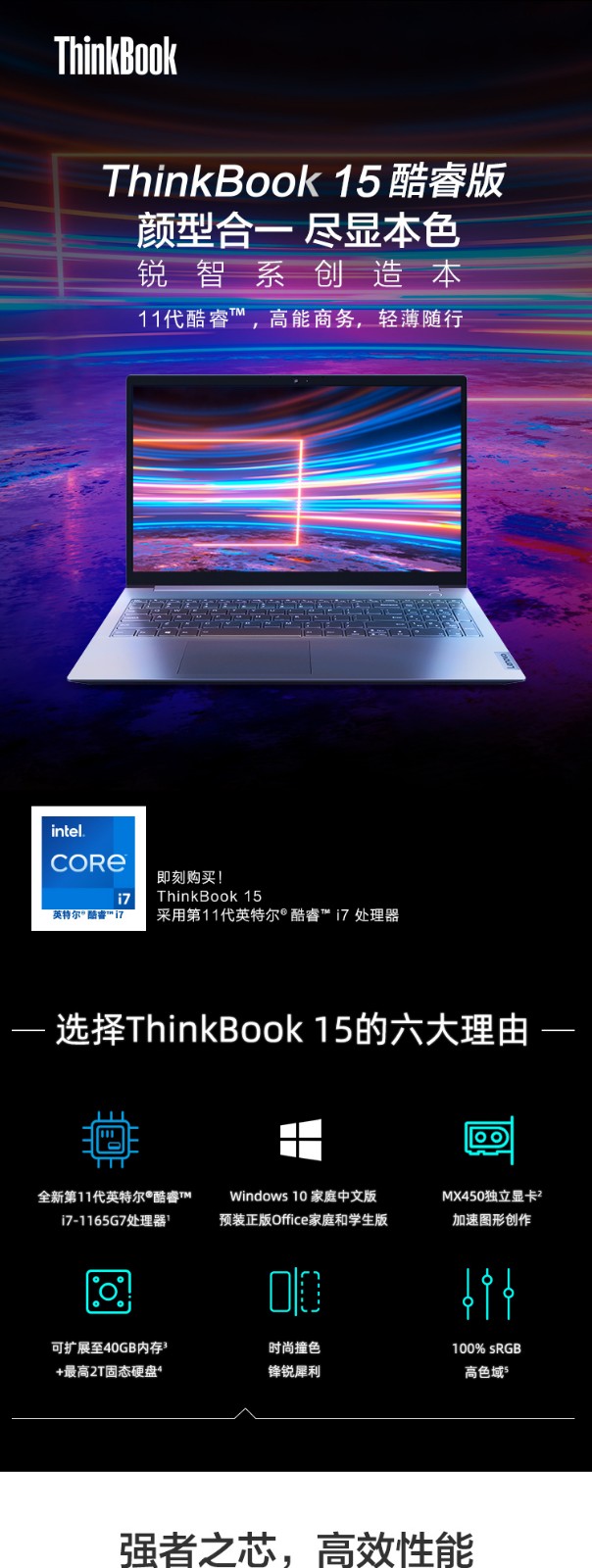 聯(lián)想ThinkBook 15 2021款 酷睿版 十一代英特爾酷睿i5 15.6英寸輕薄筆記本電腦 ThinkBook 15 11代處理器 11代i5 16G 512G 高色域@57CD