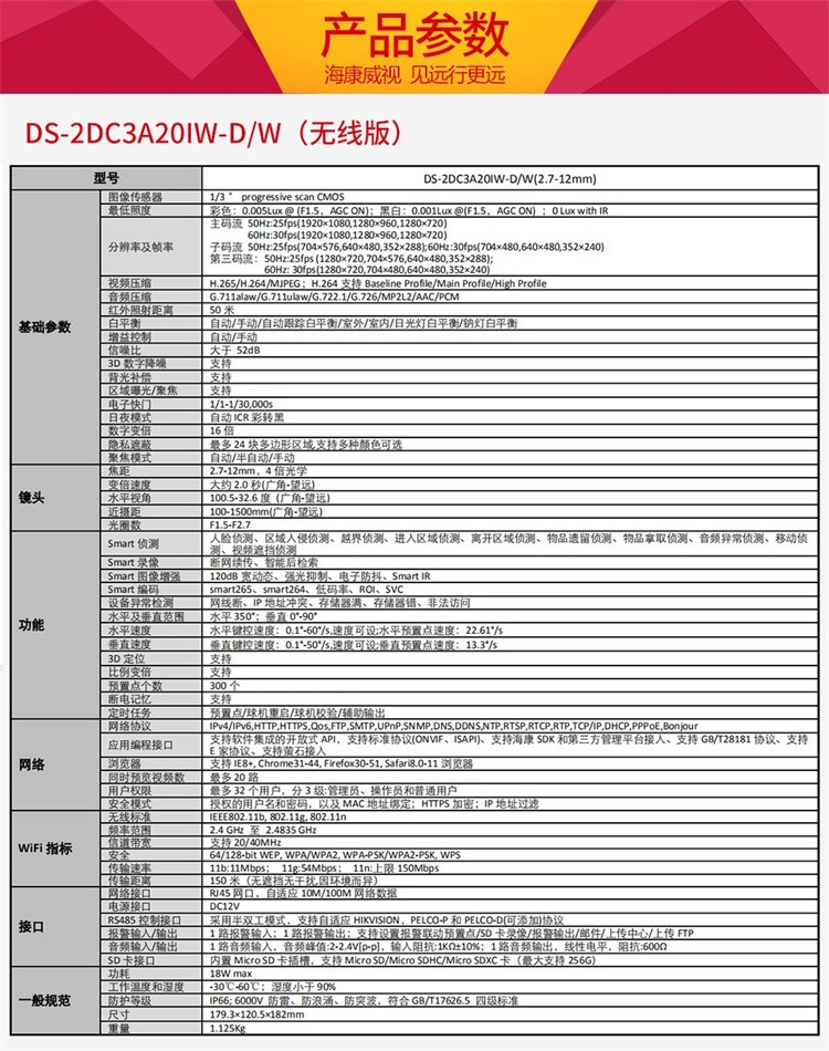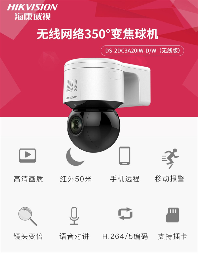 ??低?DS-2DC3A20IW-D/W(無線版)視頻監(jiān)控設(shè)備 海康威視云臺球機(jī)室外高清紅外攝像機(jī)200球機(jī)監(jiān)控攝像頭支持TF卡
